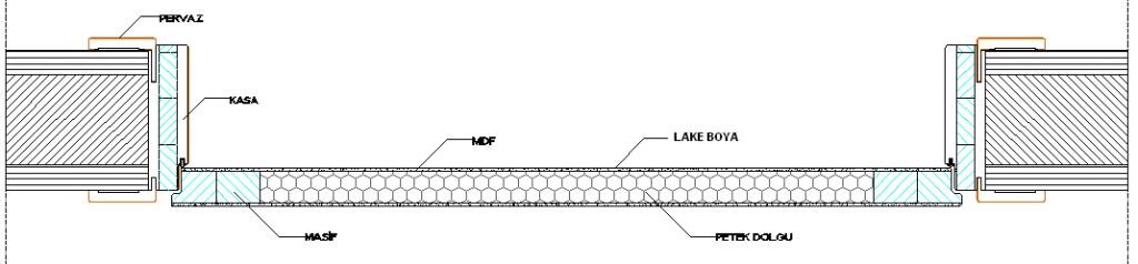 Kapı kasaları, iç malzemesi lamine edilmiş ahşap malzeme(iğne yapraklı yumuşak ağaç türlerinden Göknar, Ladin ve Çam) olup yüzeylerinde TS 64 standartlarına uygun orta yoğunlukta lifli levha ( MDF ) bulunmaktadır. Kasanın malzemesi lamine ahşap malzeme ile MDF’nin preslenerek bir araya getirilmesiyle oluşan kompozit bir üründür.